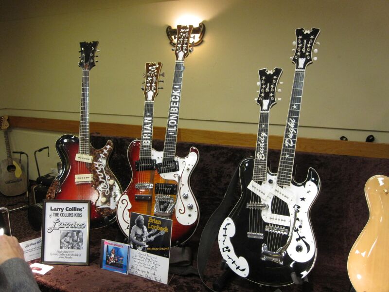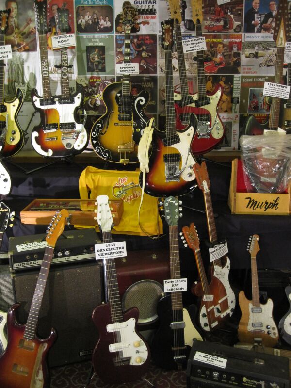 OK, a quick rundown on the GGF. Two word summary: frickin' awesome! For the most part I'll let the pictures speak for themselves. In addition to catching up with forumites I already know, I got to meet Handbrake, Elaine Frizzell and Ed Elliot. Terry, Bob Shade and Ed all had guitars on display, and I can tell you we are at a very exciting time as Mosrite fans. It was a big weekend for me personally, as not only did I have the honor of performing at the GGF, I got to meet one of my main guitar inspirations - Duane Eddy. I also had the opportunity to debut my new custom Hallmark, built by Bill Gruggett with pickups handwound by Bob. I'm sorry I didn't get a chance to meet all members who were there, but hopefully next year.