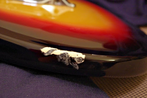 Now I have a bunch of scratches and a huge gouge out of the guitar body and a dented headstock.